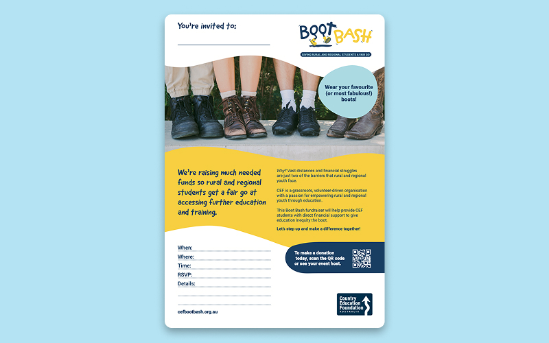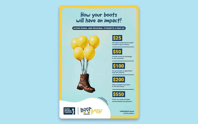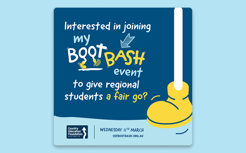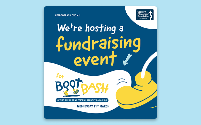 A boot bash fundraiser will help provide CEF students with direct financial support to enable them a fair go at further education.
